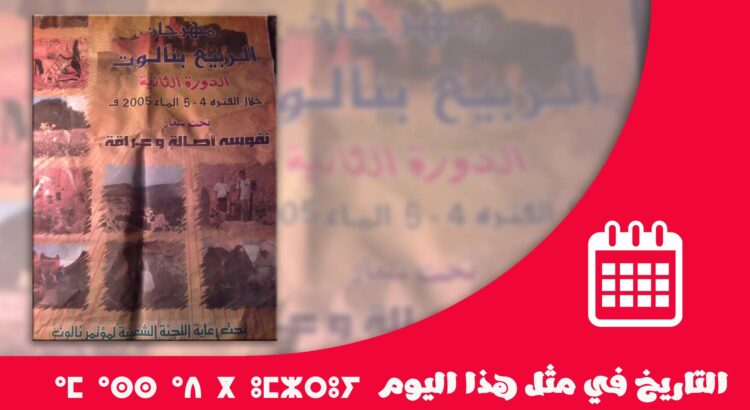 حدث في مثل هذا اليوم 5 مايو 2005، انطلق مهرجان الربيع لالوت الثقافي، في واحدة من أولى المبادرات المنظمة لإحياء الثقافة الأمازيغية في جبل نفوسة بعد سنوات طويلة من القمع والتهميش الرسمي. كان هذا المهرجان بمثابة انفراجة ثقافية وشعاع أمل في ظل واقع سياسي خانق، وشارك فيه فنانون ومبدعون وشعراء وفاعلون ثقافيون من مختلف مناطق الجبل.